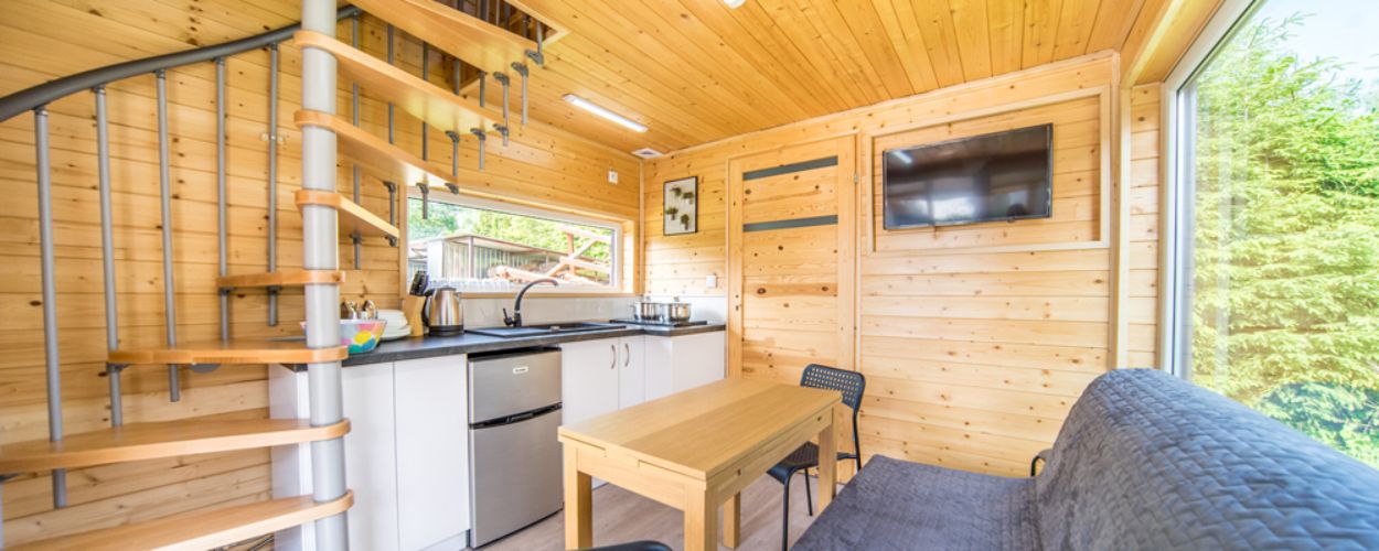 Zamieszkaj w komfortowym, dwupoziomowym domku, który zapewni Ci przestrzeń, niezależność i bliskość natury przez cały pobyt.